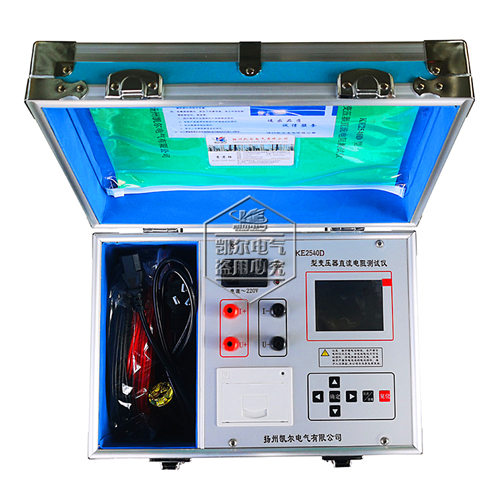 我公司自行开发生产的KE2540D型变压器直流电阻测试仪采用32位双ARM内核(双CPU),对整机进行控制,自动完成自校、稳流判断、数据处理、阻值显示等功能,可测量各种类型变压器和互感器的直流电阻。仪器可直接使用内部锂电池工作,很大程度上方便了野外工作人员的现场测试工作。
