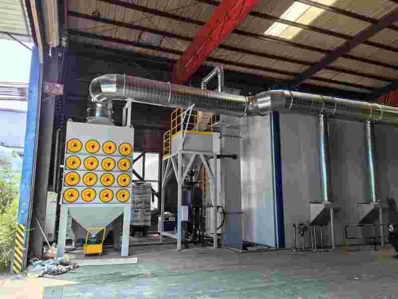 1. 磨料收集装置:喷砂过程中,磨料会散落到底部,需要及时进行收集。常见的磨料收集装置有蜂窝式地板、格栅式地板和刮板输送机等。蜂窝式地板由多个蜂窝状的小斗组成,磨料落入小斗后,通过底部的管道输送到回收系统;格栅式地板则是在地板上设置有格栅,磨料通过格栅落入下方的收集槽中;刮板输送机则是通过刮板将散落的磨料刮送到输送带上,再由输送带将磨料输送到回收系统。